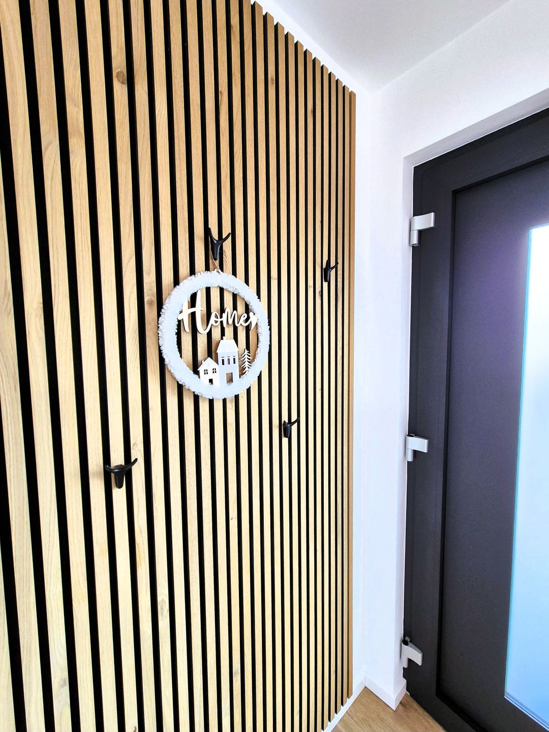 Die insgesamt ca. 54 m² Wohnfläche verteilen sich auf einen Flur, ein kleines Wohnzimmer mit Fernseher und einem 1,60 m breiten Schlafsofa für die 3. und 4. Person, eine integrierte, offene, perfekt ausgestattete Küche und ein geschmackvolles Schlafzimmer mit Doppelbett (Boxspringbett) und einem zweiten Fernseher. Die Wohnung verfügt außerdem über ein geräumiges Badezimmer mit einer Infrarotkabine für 2 Personen und einer Waschmaschine. Vom Wohnzimmer und vom Schlafzimmer aus gelangt man auf die 123 m² große Dachterrasse, die eine atemberaubende Aussicht bietet. Die Dachterrasse ist selbstverständlich mit Gartenmöbeln ausgestattet.